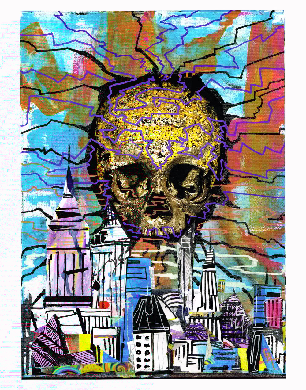 11x14 Collage and Acrylic On Stretched Canvas- Inspired by our current world situation. This piece is an attempt to express feelings and truths that are hard to face but necessary to confront for our sanity and mental well being.